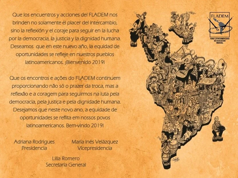 Bienvenidos Inicio ¿Qué es el FLADEM? XXV Seminario Latinoamericano de Educación Musical Historia del FLADEM - Miembros y representantes Encuentros nacionales 2018 Eventos anteriores In memoriam Coriún Aharonian CONTACTO Espacio para compartir Inscripciones XXV SLDEM - info